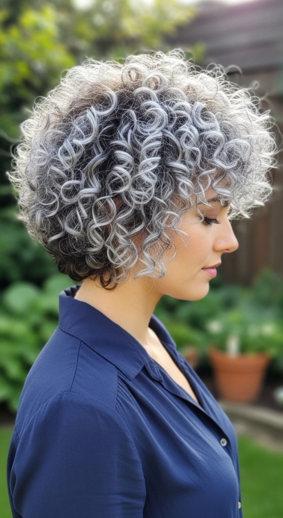 Embrace your curls! A curly pixie cut lets natural texture shine. When paired with gray strands, this look becomes a soft, cloud-like halo of effortless beauty and confidence.